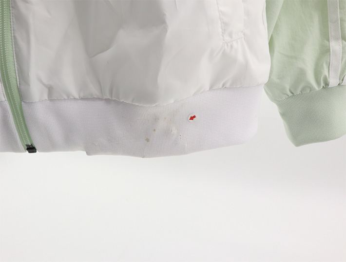 | 经检测 背面有破损(图4),有轻微污渍(图3所示),仅拆封试穿;国内知名自营商城退货商品,正品保证。 | |