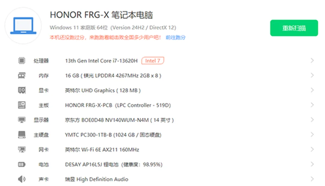 | 经检测 屏幕细小划痕,机身磕碰,无维修,硬盘使用585小时,激活日期25年6月21号。 | |