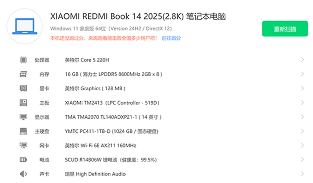 | 经检测 屏幕无划痕,机身轻微磨损,无维修,硬盘使用45小时,激活日期25年4月13号。 | |