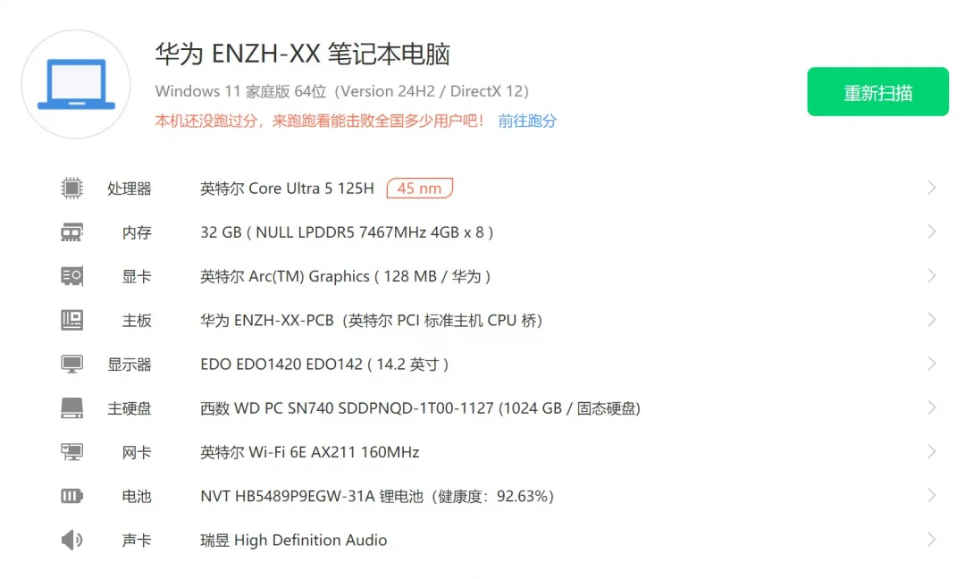 | 经检测 屏幕细小划痕,机身轻微磨损,无维修,硬盘使用211小时,激活日期2024-9-2。 | |