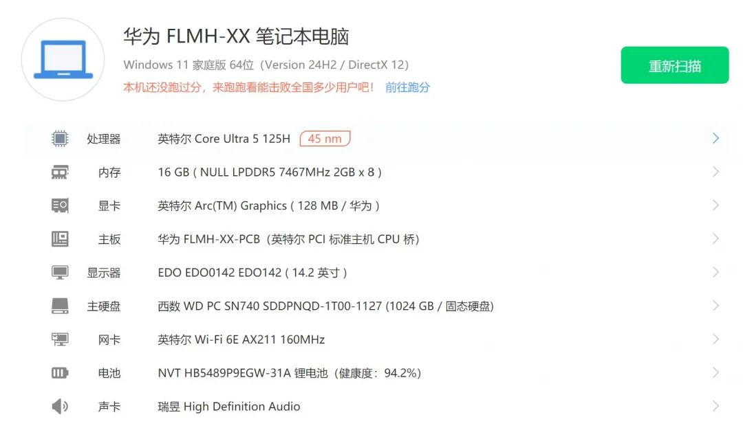 | 经检测 屏幕无划痕,机身轻微磨损,无维修,硬盘使用245小时,激活日期24年8月14号。 | |