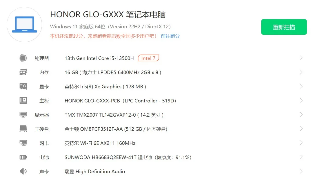 | 经检测 屏幕无划痕,机身轻微磨损掉漆,更换金士顿512G硬盘,硬盘使用6046小时,激活日期23年10月25日。 | |