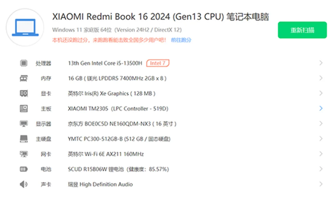 | 经检测 屏幕无划痕,机身轻微磨损,无维修,硬盘使14688小时,激活日期23年12月19号。 | |