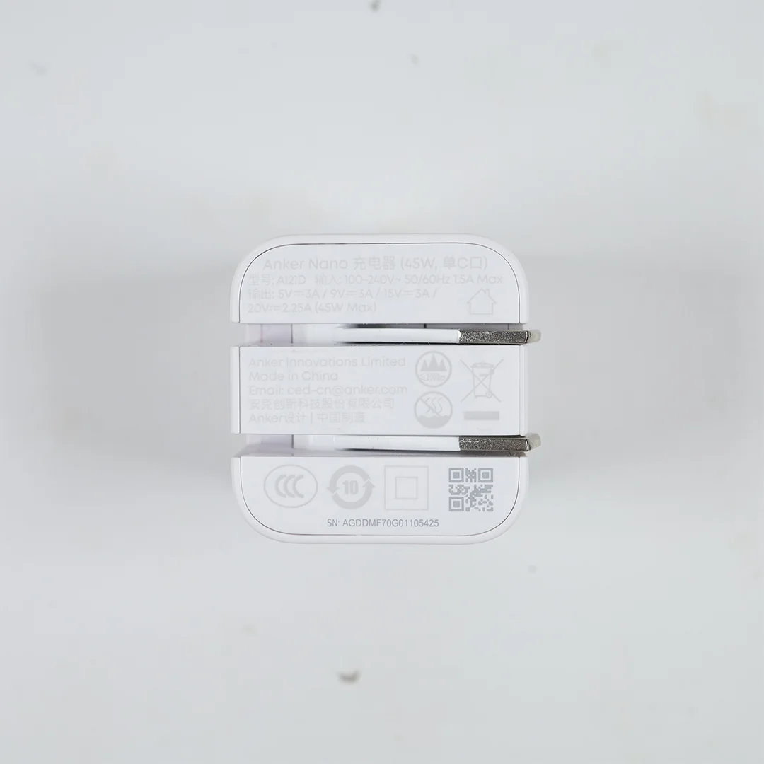 99新 ANKER安克 45W屏显氮化镓充电头 可折叠插脚 白色 A121D