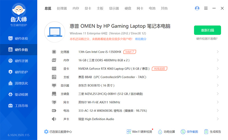 | 经检测 屏幕无划痕,外观轻微磨损,无维修,加装512G固态硬盘。激活日期23-12-5。 | |