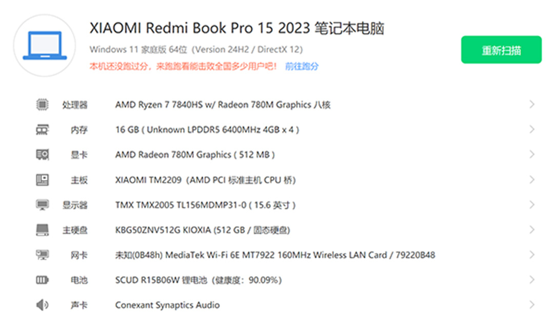 | 经检测 屏幕明显划痕,机身划痕小磕碰,无维修,硬盘使用505小时,激活日期23年12月1号。 | |