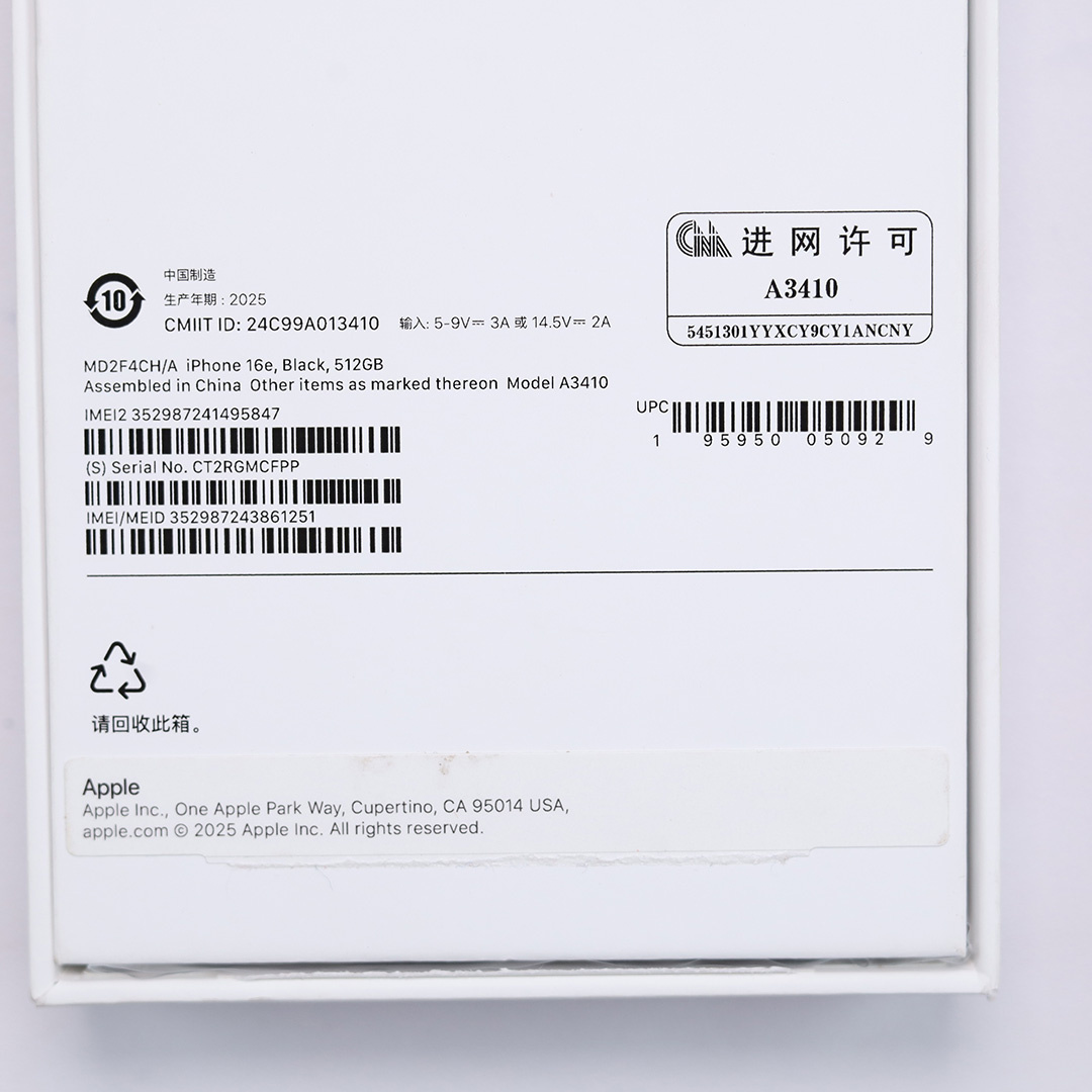 95新 iPhone 16e 黑色 512G 国行 带包装配件 100%电池113次充电