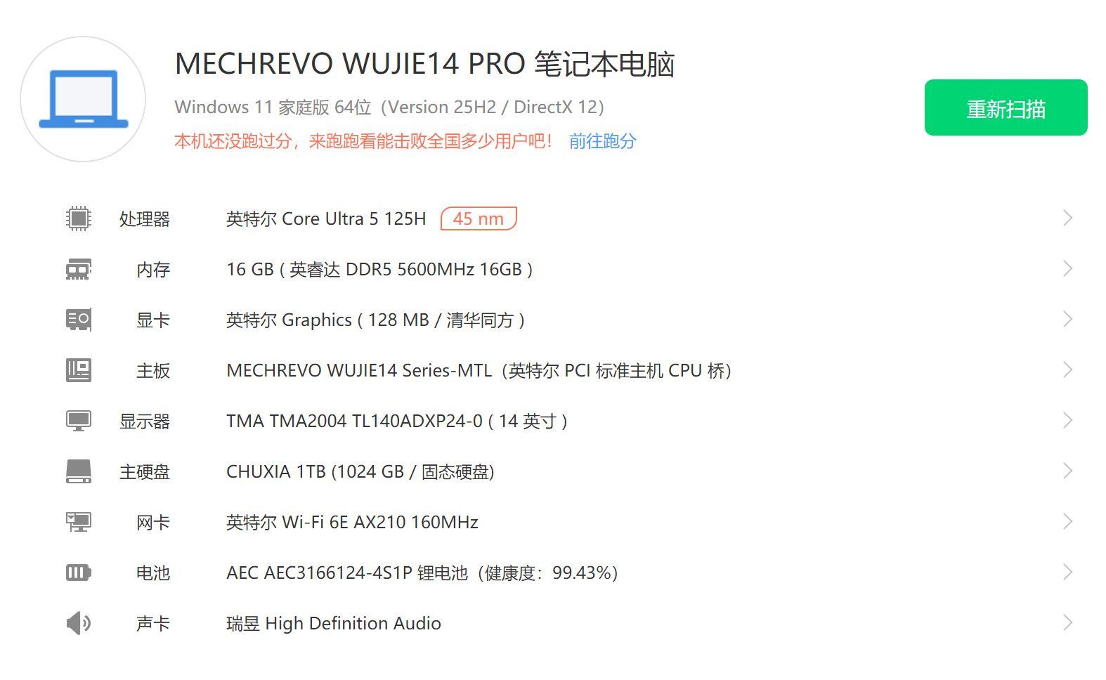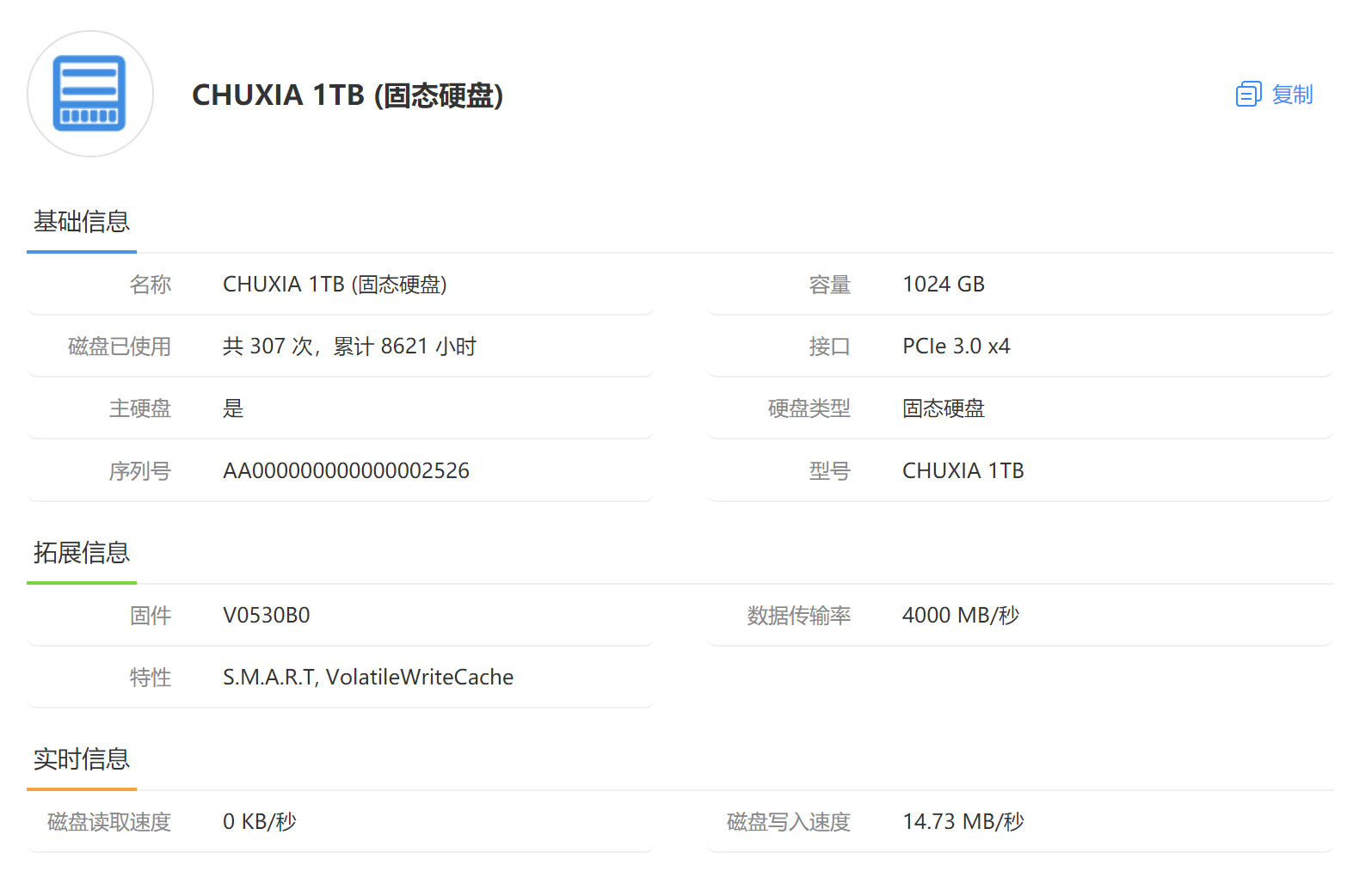 | 经检测 屏幕小划痕,外观使用磨损,更换1T硬盘,硬盘使用时间8621小时,激活日期24年2月28号。 | |