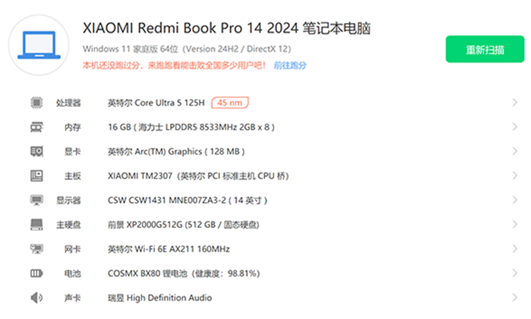 | 经检测 屏幕无划痕,机身小磕碰,无维修,硬盘使用764小时,激活日期24年9月11号。 | |