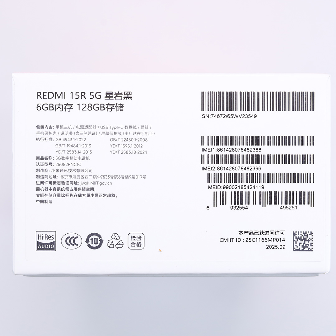 99新 红米15R 星岩黑 6+128G 带包装配件 天玑6300