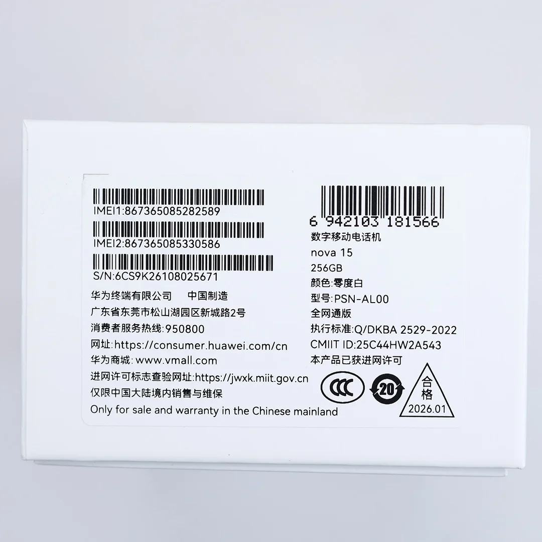 95新 华为 nova 15 零度白 12+256G 带包装配件 100%电池 麒麟 8020