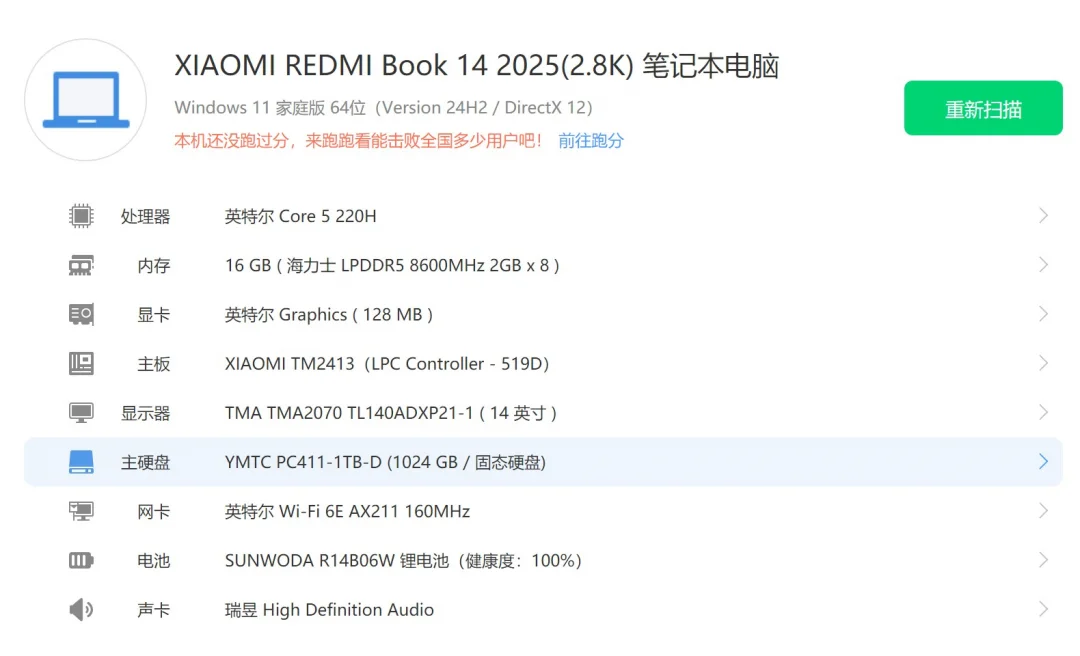 95新 小米 RedmiBook 14 2025款 Core5-220H 16G内存 1T固态 集成显卡 2.8K 120Hz 星光银