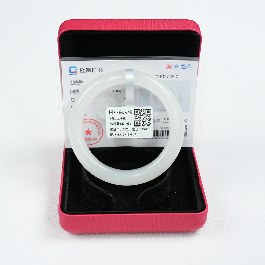 自营 和田玉55.9圈口白色正圈手镯