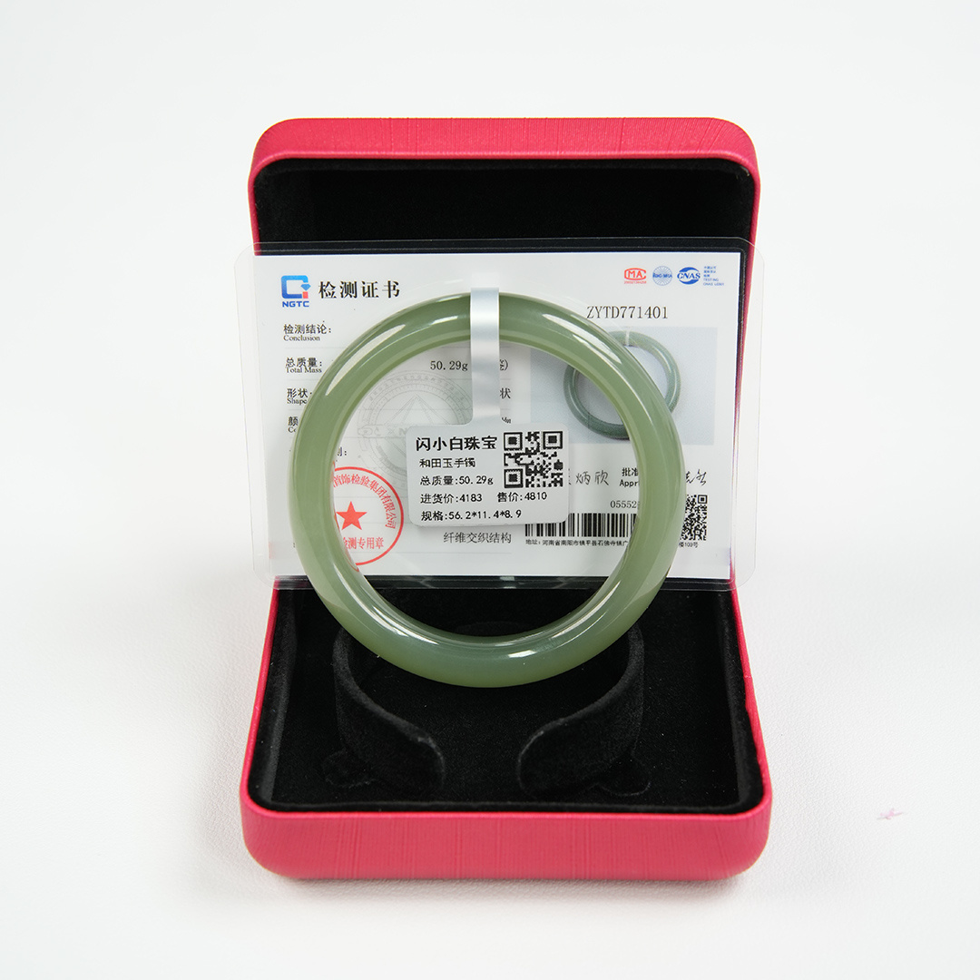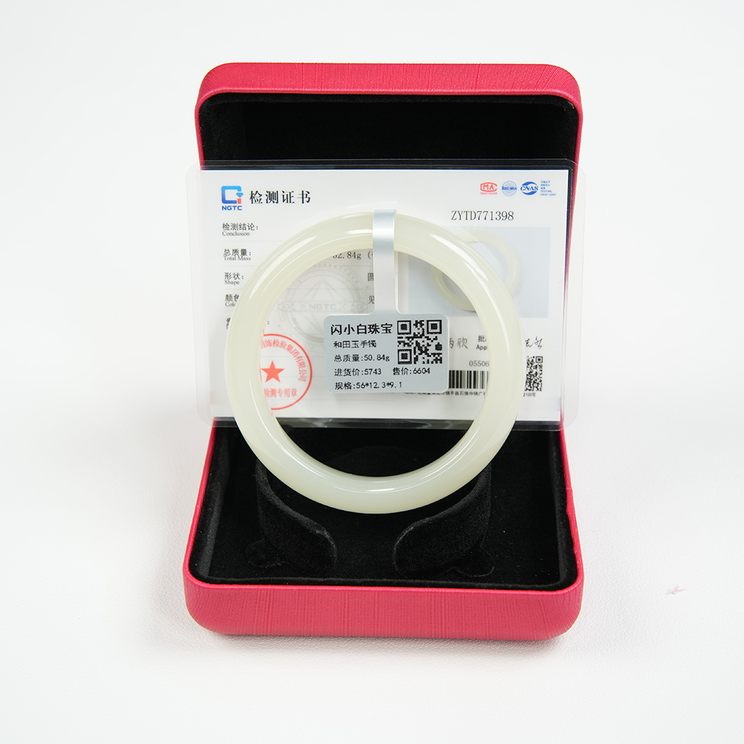 自营 和田玉56圈口晴水正圈手镯